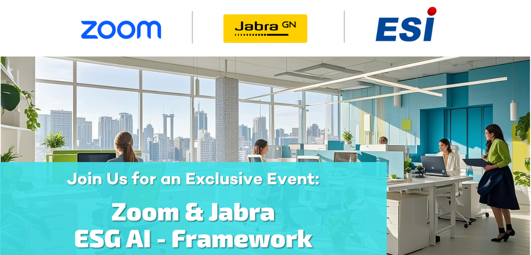 We are thrilled to invite you to join Zoom, Jabra and ESI on session to discuss how AI technologies and ESG practises can boost your business operations. Join us to explore how innovation and sustainability can drive your business forward in 2025 and beyond.